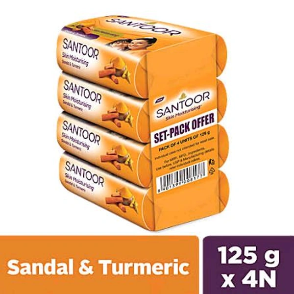 Discover the timeless essence of sandalwood and turmeric with SANTOOR SANDAL SOAP 4P, available exclusively at Quick Carts. This premium soap is crafted to deliver a rejuvenating bathing experience while caring for your skin with its natural goodness. Perfect for daily use, it leaves your skin radiant, refreshed, and irresistibly soft.
