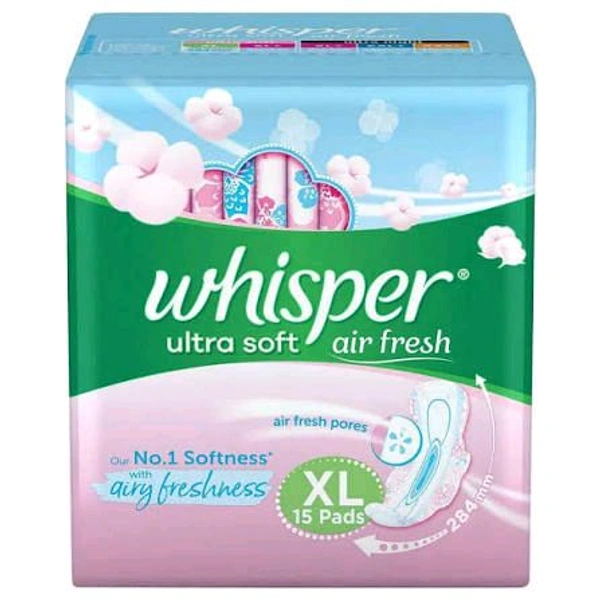 Engineered to provide superior protection and tailored for heavy flow days, Whisper Soft XL ensures you stay confident and worry-free throughout the day. The 2+1 pack offers exceptional value, with 15 individually packed pads that promise consistent performance and unbeatable comfort.